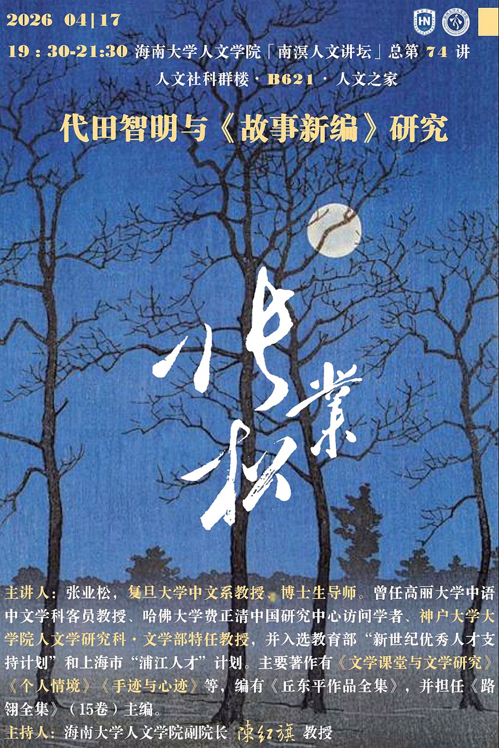 【学术预告】新葡京赌场 “南溟人文讲坛”第74讲 张业松:代田智明与《故事新编》研究