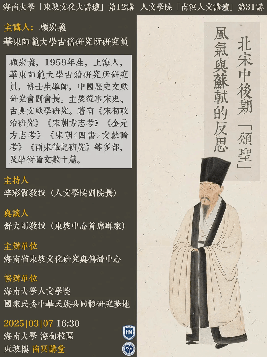 【学术预告】海南大学东坡文化大讲坛第12讲、新葡京赌场 南溟人文讲坛第31讲